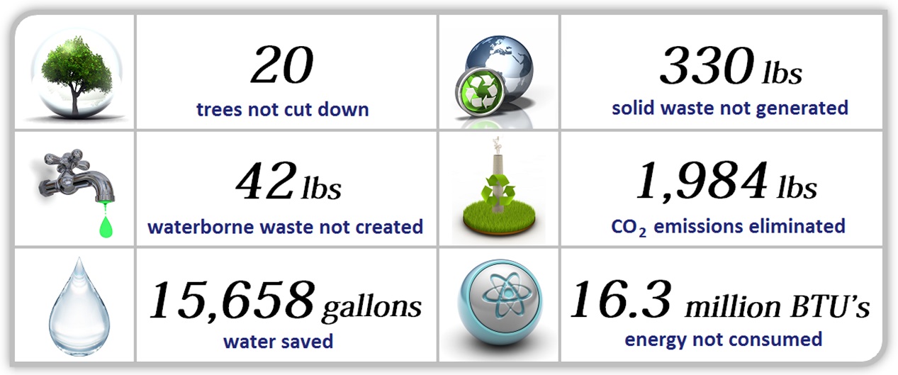 The following is an illustrated calculation of a Stone Paper user’s contribution to preserve our natural resources by replacing 1 ton of virgin coated paper with 1 ton of Stone Paper